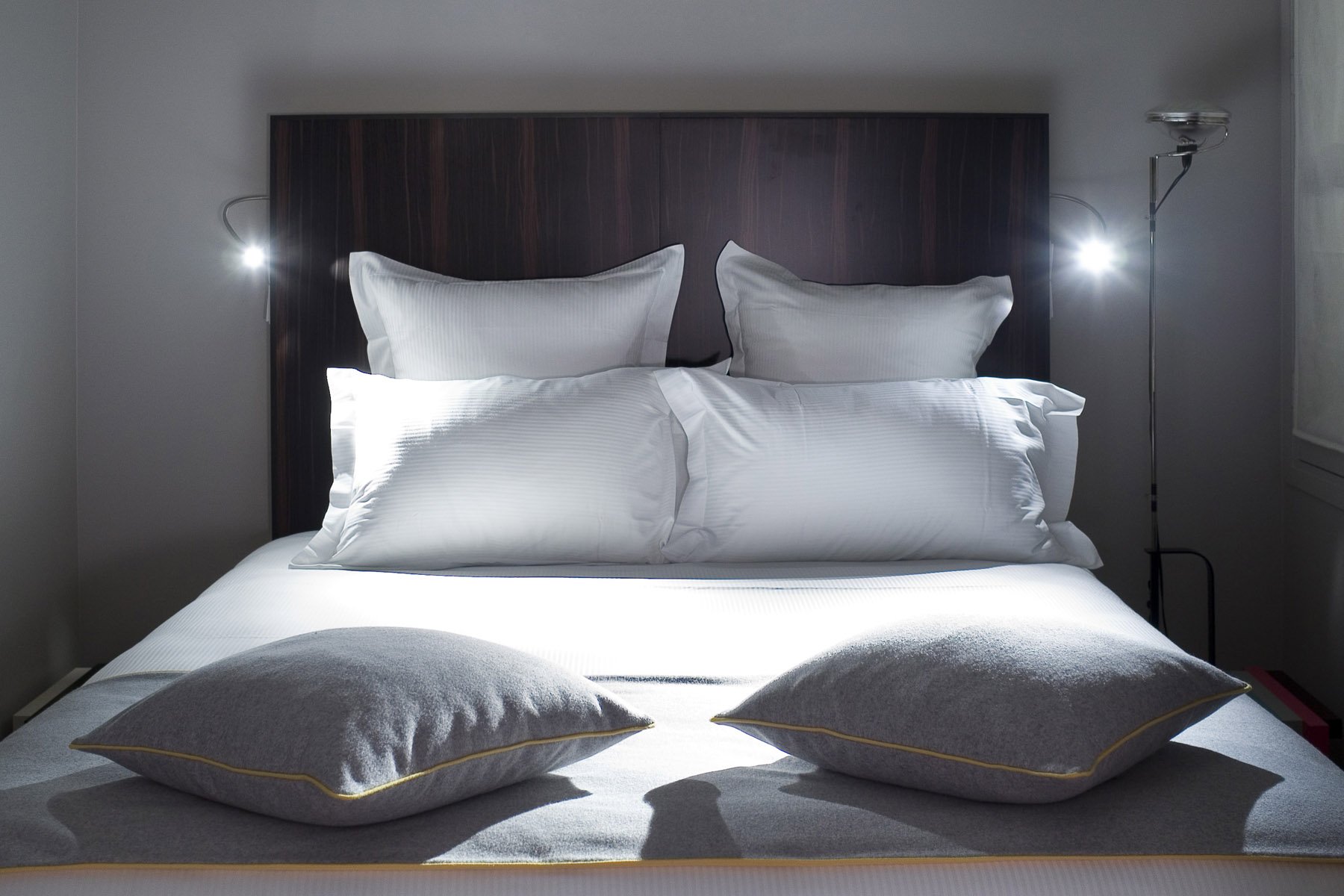 Our Twin King Comfort rooms are fitted with a King Size bed (minimum 180cm) or two Twin beds, from 15 to 16 m². These guest rooms look out onto the interior courtyard. Featuring Nuxe amenities, bathrobes, and slippers, the bathroom offers sleek, high-design style, perfect for enjoying an Italian shower.