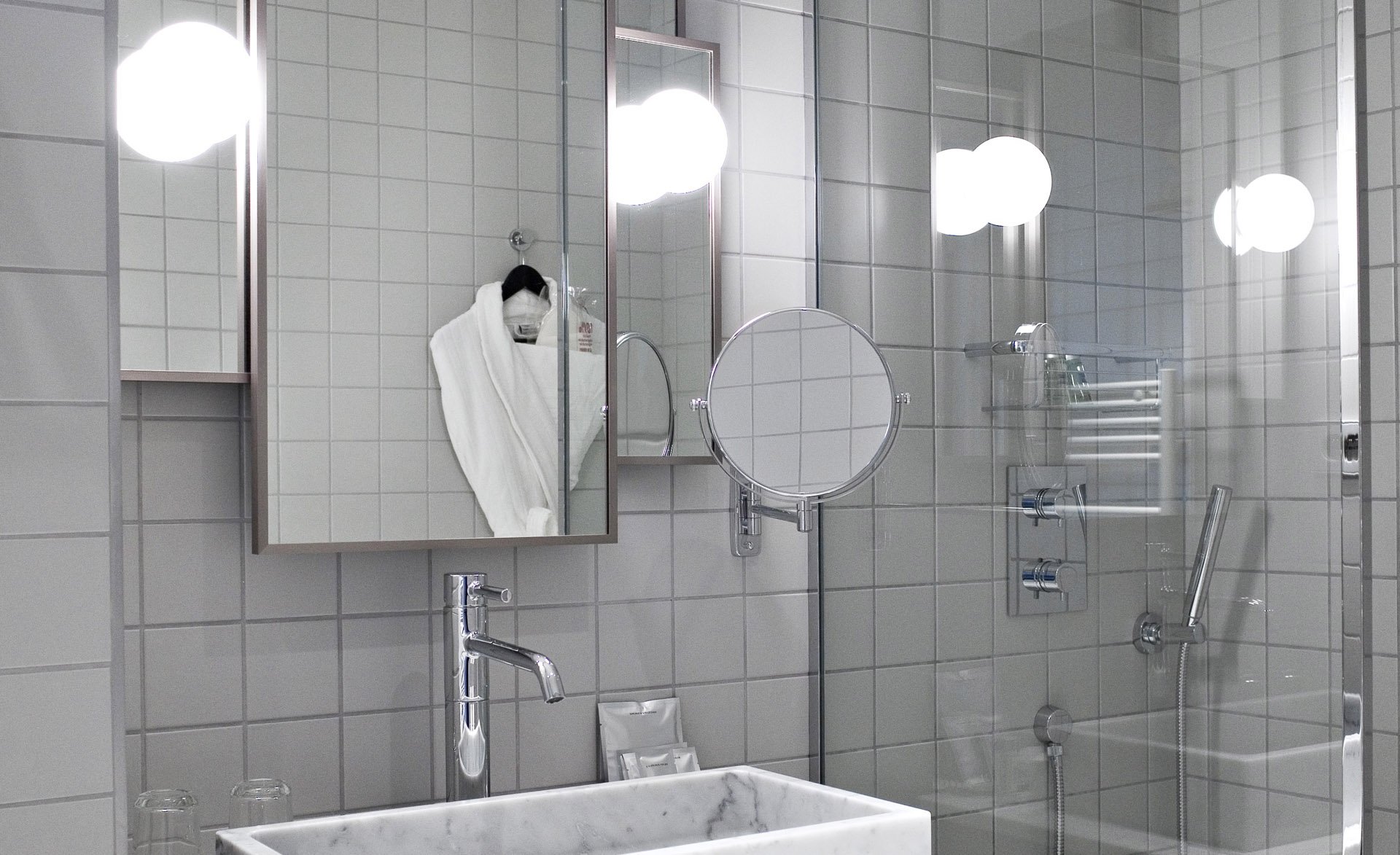 Featuring Nuxe amenities, bathrobes, and slippers, the bathroom offers sleek, high-design style, perfect for enjoying an Italian shower. For your enjoyment, we are pleased to provide a minibar as well as a Nespresso machine and everything you need for an herbal tea right in your room.